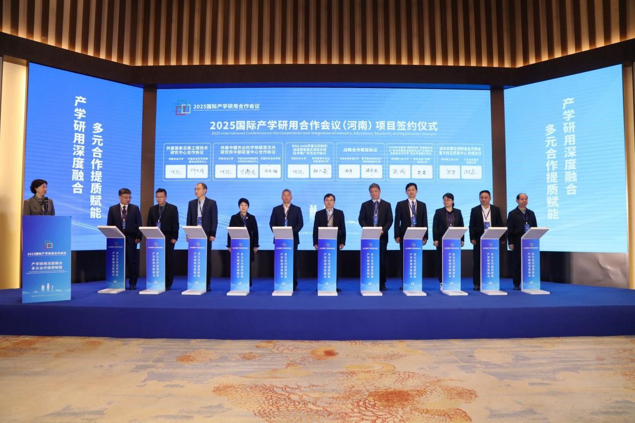 开幕式上,河南省教育厅领导与郑州大学、河南大学等9所承办高校负责人共同按下启动键,正式开启2025国际产学研用合作会议河南片区系列活动。现场签署校企、校际合作协议12项。